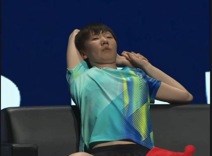 是的,在经历了和桥本帆乃香的100分钟大战,在和申裕斌的逆转大战中,王曼昱的体能几乎是消耗殆尽,再加上右肩伤情的爆发,让王曼昱这一场比赛根本就不在状态。